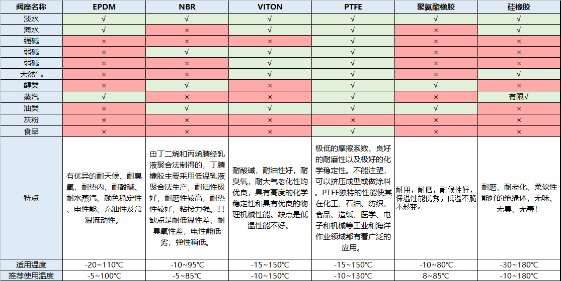 總體而言,閥座的選擇,我們主要根據(jù)通過(guò)的介質(zhì)來(lái)確定。以下是中線閥座的適用介質(zhì)表,僅供參考