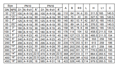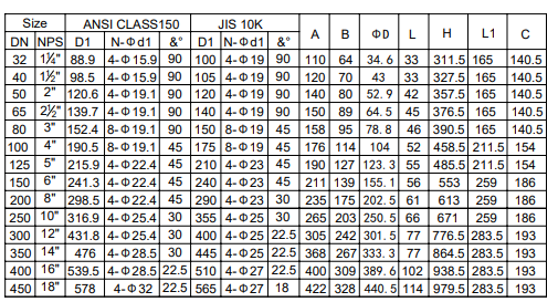 -連接標準:PN10/16, ANSI150, DIN16, JIS10K, 16K