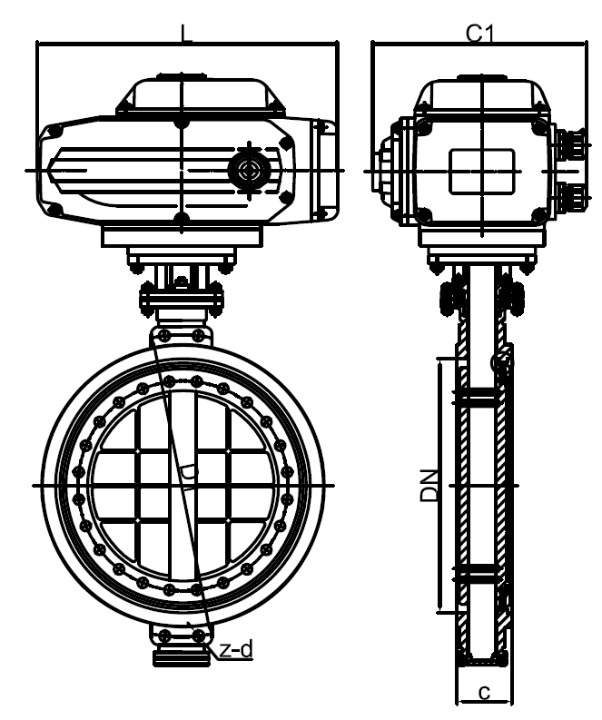 立即咨詢電動硬密封對夾蝶閥外形圖: