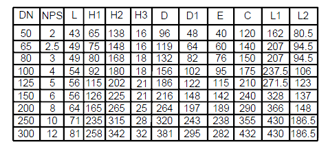 氣動(dòng)高性能對(duì)夾蝶閥尺寸表: