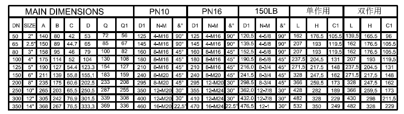 -連接標(biāo)準(zhǔn):PN10/16, ANSI150, DIN16, JIS10K, 16K