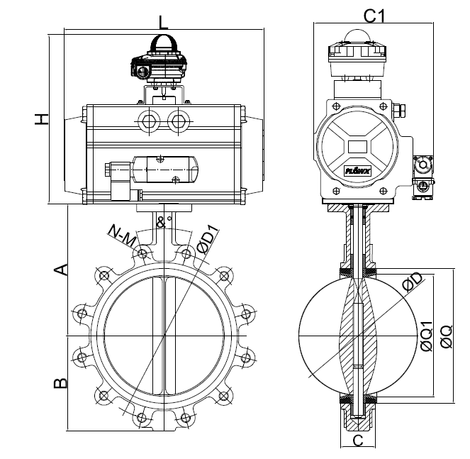 氣動(dòng)LT支耳蝶閥尺寸表: